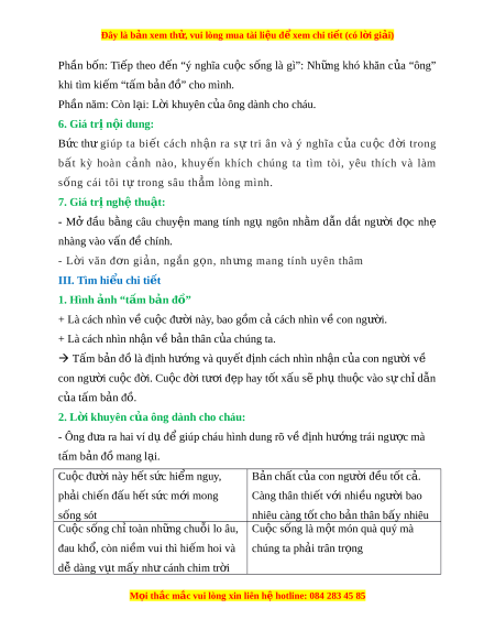 Đây là bản xem th , vu ử i lòng mua tài li u ệ đ xe ể m chi ti t (c ế ó l i ờ gi i ả ) Ph n ầ b n: ố Ti p ế theo đ n ế “ý nghĩa cu c ộ s ng ố là gì”: Nh ng ữ khó khăn c a ủ “ông” khi tìm ki m ế “t m ấ b n đ ả ” cho m ồ ình. Ph n năm ầ : Còn l i ạ : L i ờ khuyên c a ủ ông dành cho cháu. 6. Giá tr n ị i ộ dung:
