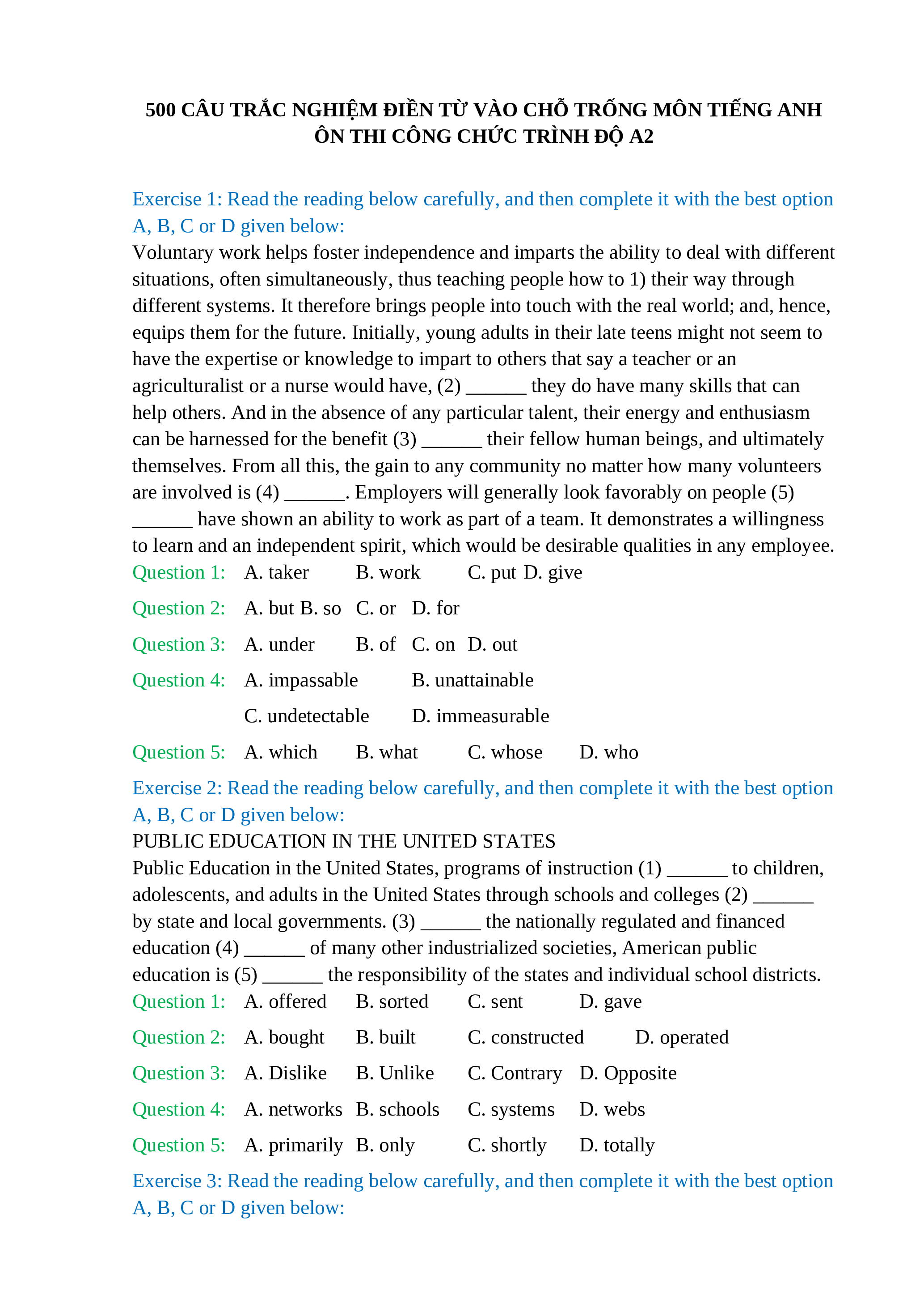 Tài liệu 500 câu điền từ tiếng Anh ôn thi viên chức