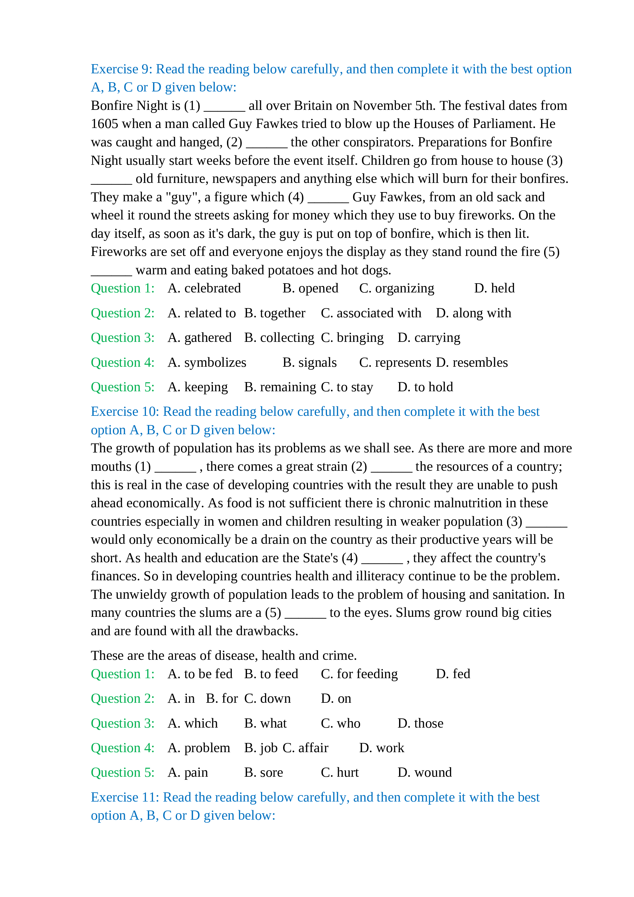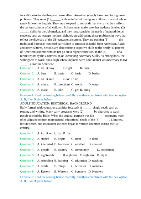 Exercise 2: Read the reading below carefully, and then complete it with the best option A, B, C or D given below: