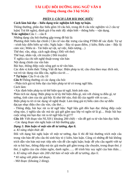Tài liệu bồi dưỡng Học sinh giỏi Ngữ Văn 8 (chung cho ba sách) phiên bản 2