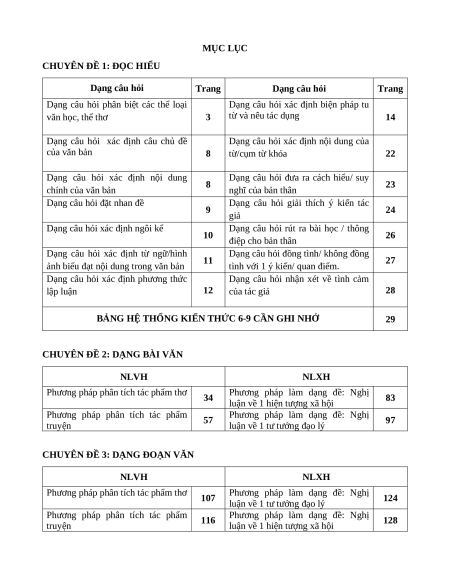 CHUYÊN ĐỀ 1: ĐỌC HIỂU Dạng câu hỏi Trang Dạng câu hỏi Trang