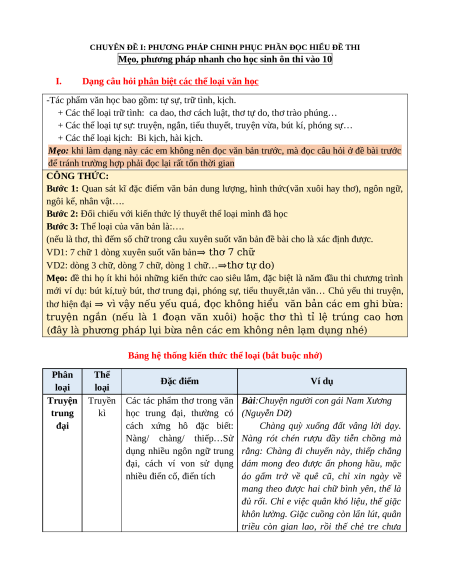 CHUYÊN ĐỀ I: PHƯƠNG PHÁP CHINH PHỤC PHẦN ĐỌC HIỂU ĐỀ THI