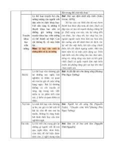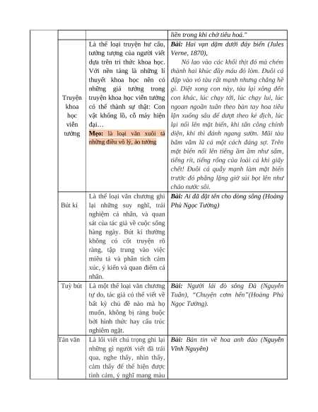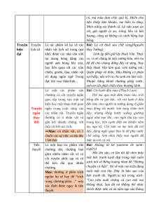 Bảng hệ thống kiến thức thể loại (bắt buộc nhớ) Phân Thể Đặc điểm Ví dụ loại loại