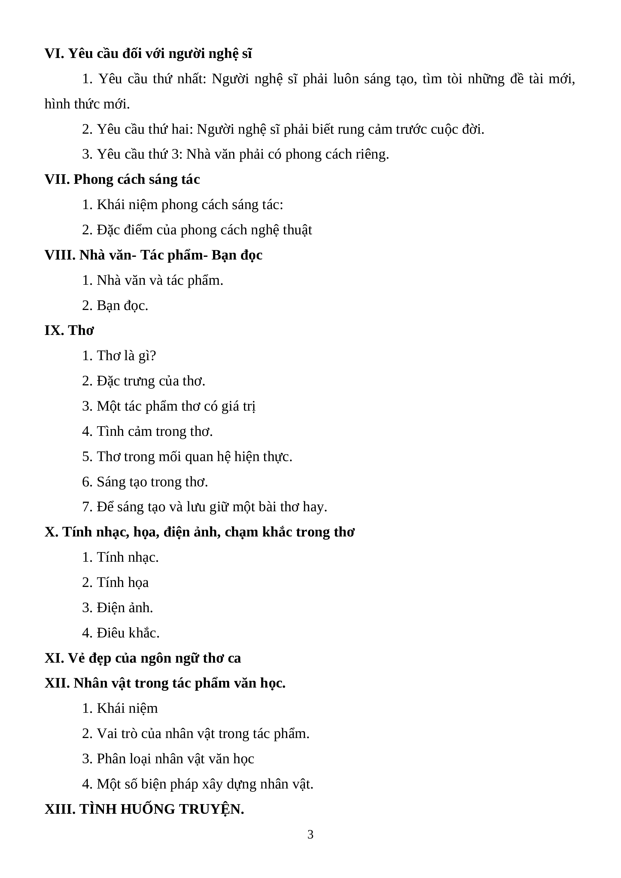 VI. Yêu cầu đối với người nghệ sĩ