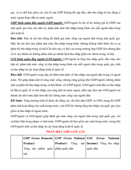 Kết luận: Tăng trưởng kinh tế được đo bằng các chỉ tiêu như GDP và GNI, trong đó GDP