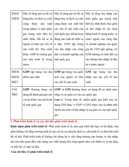 2. Phát triển kinh tế và các chỉ tiêu phát triển kinh tế.