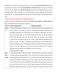 bộ xã hội. Phát triển kinh tế không chỉ dừng lại ở việc tăng trưởng sản lượng và thu nhập,