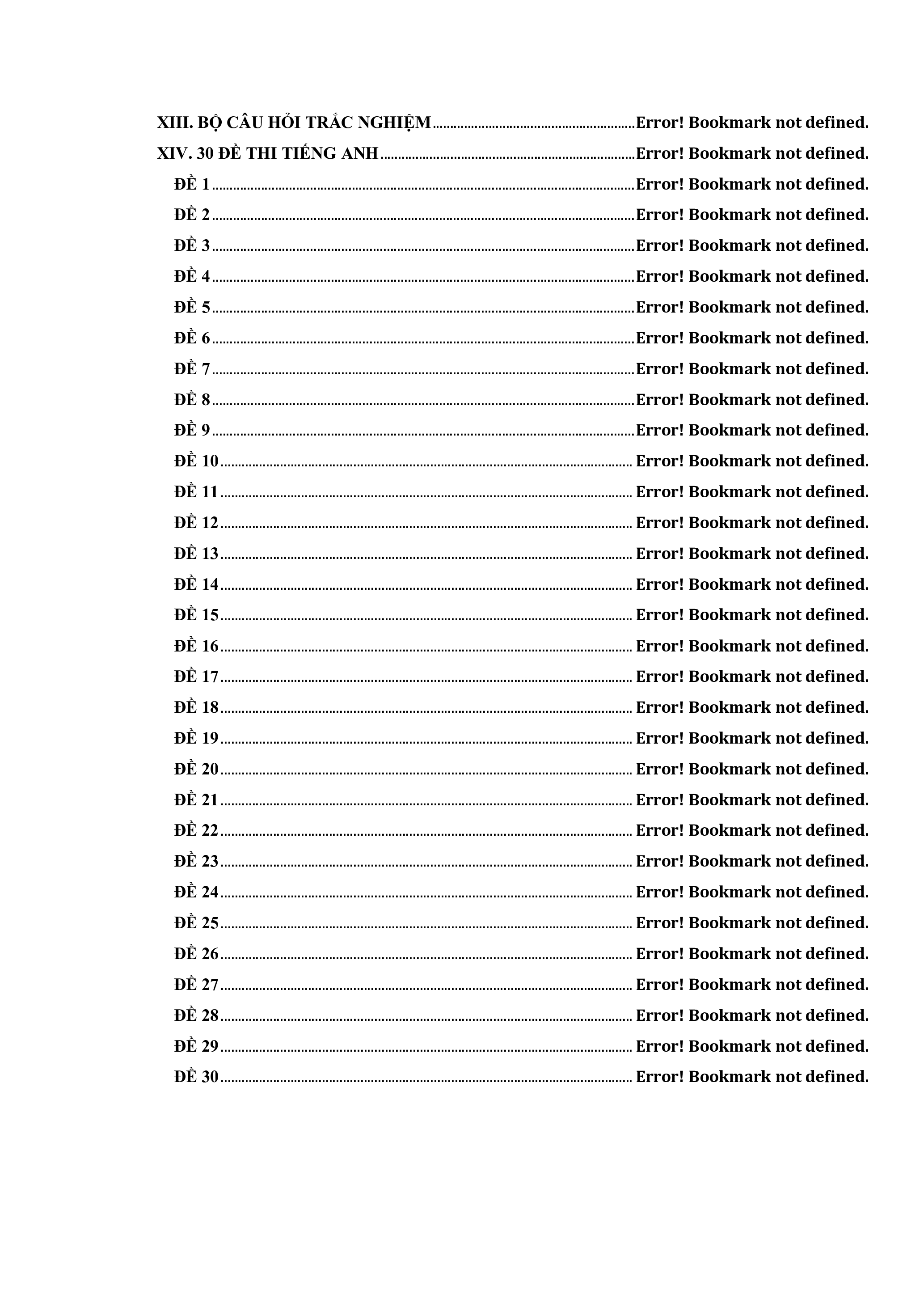 XIV. 30 ĐỀ THI TIẾNG ANH. . . . . . . . . . . . . . . . . . . . . . . . . . . . . . . . . . . . .Error! Bookmark not defined.