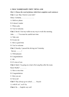 I. TRẮC NGHIỆM KIẾN THỨC TIẾNG ANH. . . . . . . . . . . . . . . . . . . . . . . . . . . . . . . . . . . . . . . . . . . . . . . . . . . 5