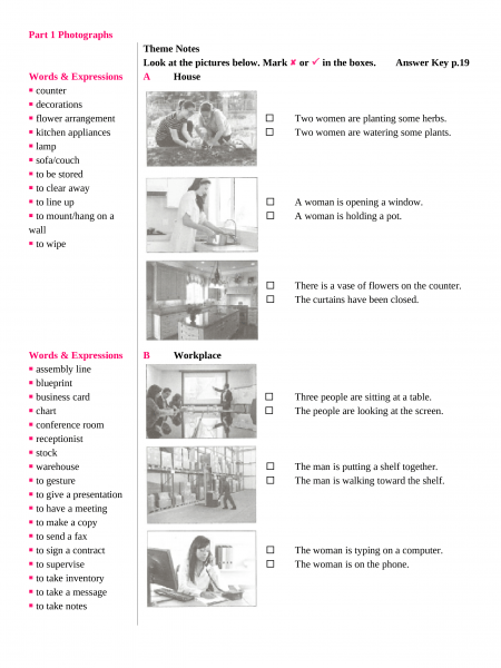 Look at the pictures below. Mark or in the boxes. Answer Key p.19