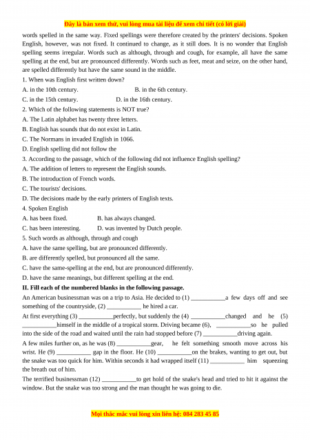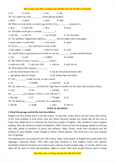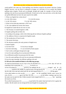 D. The decisions made by the early printers of English texts. 4. Spoken English A. has been fixed. B. has always changed. C. has been interesting.