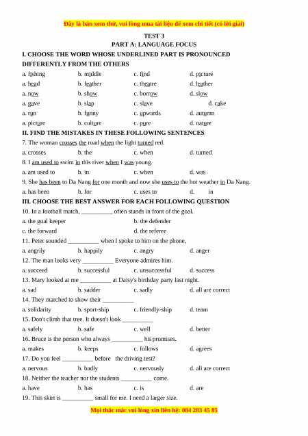 Test 3 - Bộ đề bồi dưỡng học sinh giỏi tiếng Anh toàn diện lớp 6 - Giáo viên Linh Đan
