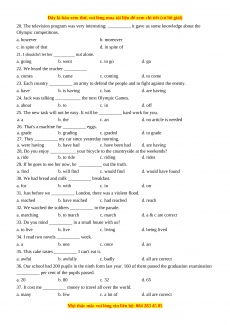 24. Jack was talking ___________ the next Olympic Games. a. about b. to c. in d. off