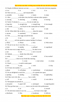 19. People of different interests can tune __________ their favorite television programs. a. in at b. in c. in to d. to