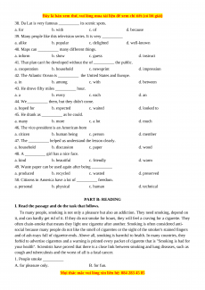 cough and tuberculosis and the worst of all is a fatal cancer. 1. People smoke __________ A. for pleasure only. B. for fun.