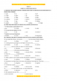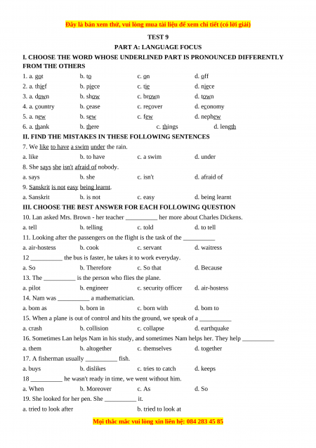 Test 9 - Bộ đề bồi dưỡng học sinh giỏi tiếng Anh toàn diện lớp 6 - Giáo viên Linh Đan