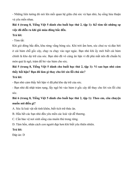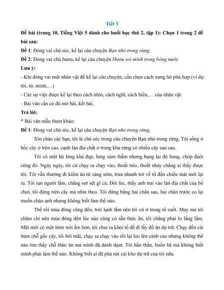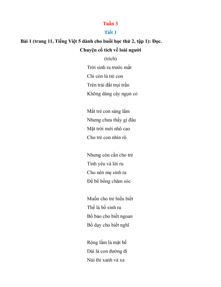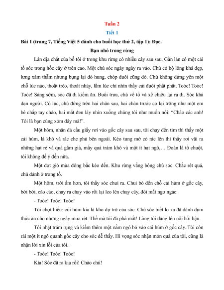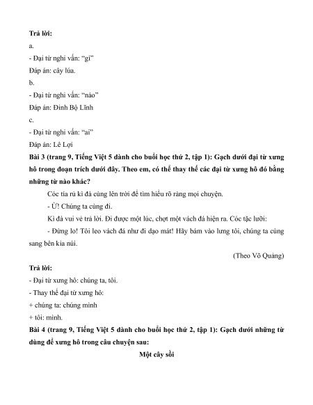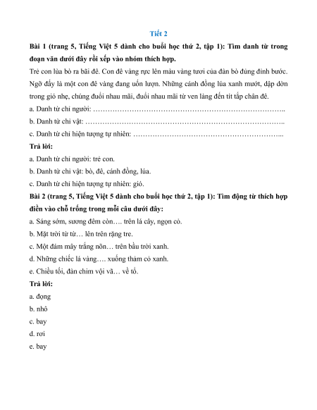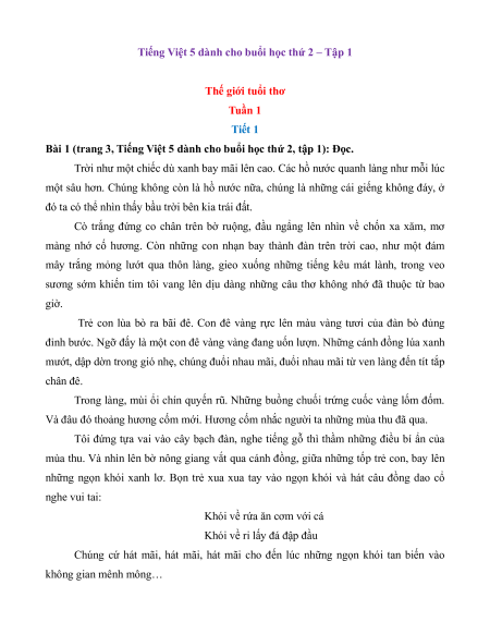 Tiếng Việt lớp 5 Dành cho buổi học thứ 2