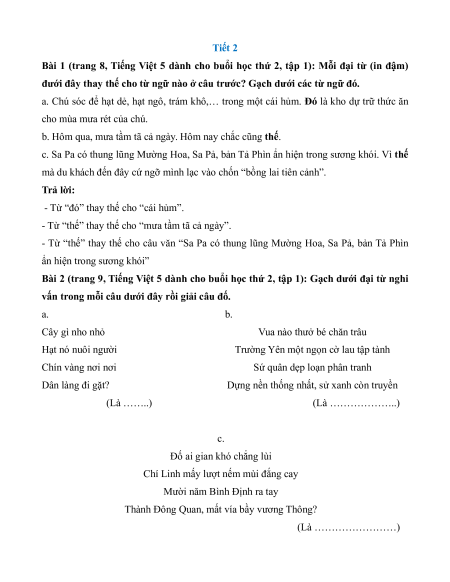 - Tailieugiaovien.com.vn giới thiệu Tiếng Việt lớp 5 Dành cho buổi học thứ 2 mới nhất nhằm giúp Giáo viên có thêm tài liệu tham khảo Tiếng Việt lớp 5.