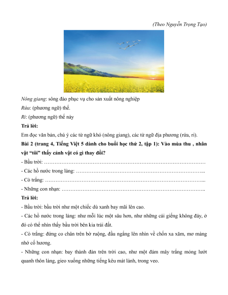 Bài 2 (trang 4, Tiếng Việt 5 dành cho buổi học thứ 2, tập 1): Vào mùa thu , nhân