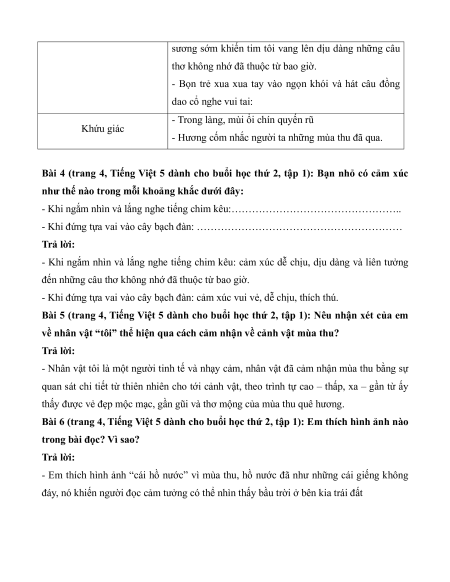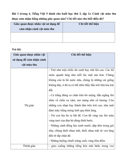 Bài 3 (trang 4, Tiếng Việt 5 dành cho buổi học thứ 2, tập 1): Cảnh vật mùa thu