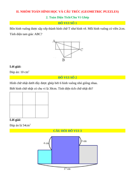 2. Toán Diện Tích/Chu Vi Ghép ĐỐ VUI SỐ 1