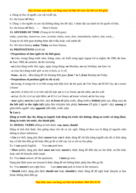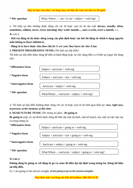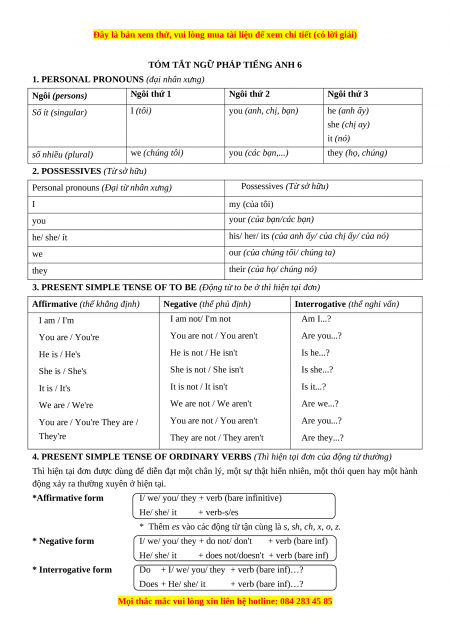 TÓM TẮT NGỮ PHÁP TIẾNG ANH 6