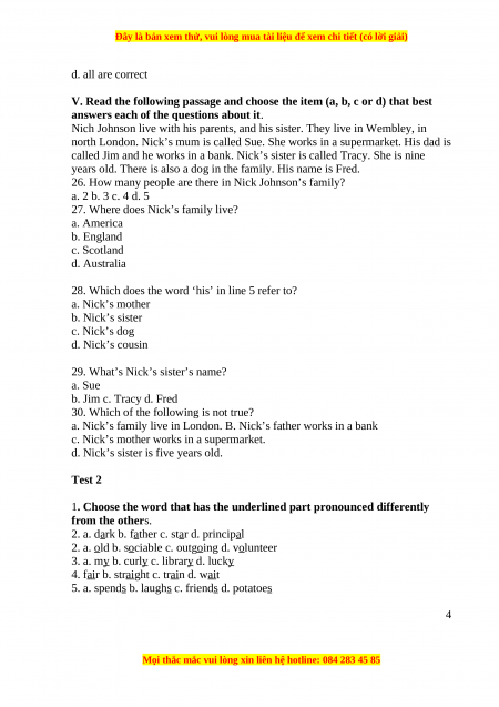 27. Where does Nick’s family live? a. America b. England c. Scotland d. Australia