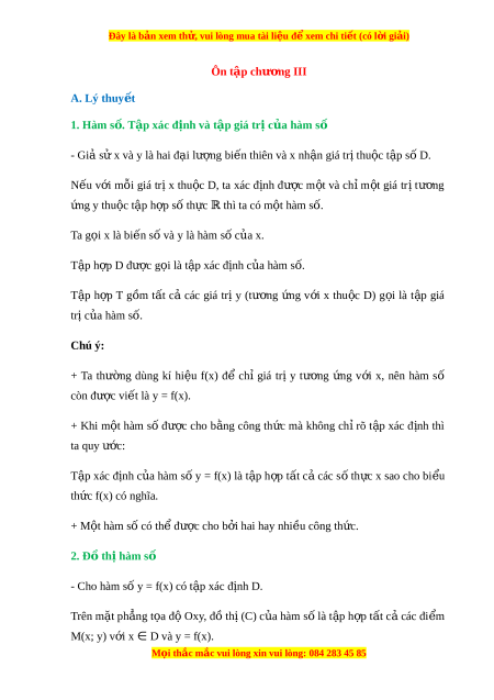 Đây là bản xem th , vu ử i lòng mua tài li u ệ đ xe ể m chi ti t ế (có l i ờ gi i ả ) Ôn tập chư ng ơ III A. Lý thuy t ế 1. Hàm s .