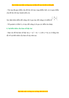ệ x1; x2 thì đồ thị hàm số b c ậ hai y = ax2 + bx + c c t ắ tr c ụ hoành t i ạ hai đi m ể l n ầ lư t ợ có hoành độ là hai nghi m ệ này. *Cách v đ ẽ t ồ h hà ị m s b ố c hai ậ : Cách v đ ẽ ồ th hàm ị s b ố c ậ hai y = ax2 + bx + c (v i ớ a ≠ 0): b ; - Xác định t a đ ọ đ ộ ỉnh S 2a 4a . b - Vẽ tr c ụ đối x ng d l ứ à đư ng ờ th ng x = ẳ 2a . M i