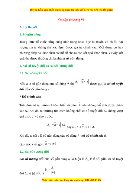 Đây là bản xem th , vu ử i lòng mua tài li u ệ đ xe ể m chi ti t ế (có l i ờ gi i ả ) Ôn t p ch ậ ư ng ơ VI A. Lý thuy t ế 1. S g ố ần đúng Trong th c ự tế cu c ộ s ng ố cũng như trong khoa h c ọ kĩ thu t ậ , có nhi u ề đ i ạ lư ng