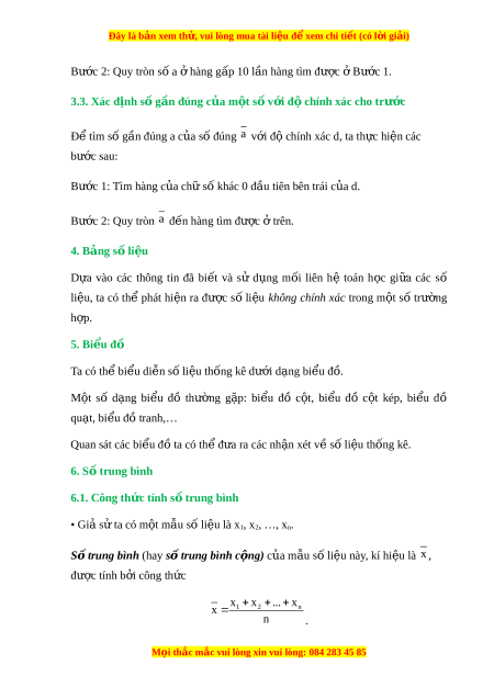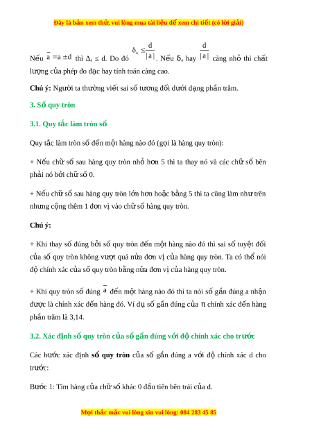 Đây là bản xem th , vu ử i lòng mua tài li u ệ đ xe ể m chi ti t ế (có l i ờ gi i ả ) Bư c ớ 2: Quy tròn s a ố hàng g ở p 10 l ấ n hàng ầ tìm đư c ợ B ở ư c 1. ớ 3.3. Xác đ nh s ị ố g n đúng c ầ a m ủ t ộ s v ố i ớ đ chí ộ nh xác cho trư c ớ Đ t ể ìm số g n đúng a c ầ a s ủ ố đúng a v i ớ đ chí ộ nh xác d, ta th c hi ự n các ệ bư c s ớ au: Bư c ớ 1: Tìm hàng c a ch ủ ữ s khác 0 đ ố u t ầ iên bên trái c a d. ủ Bư c ớ 2: Quy tròn a đ n hàng ế tìm đư c ợ t ở rên. 4. Bảng số li u ệ D a