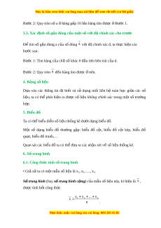 ệ không chính xác trong m t ộ số trư ng ờ h p. ợ 5. Bi u đ ể ồ Ta có th bi ể u di ể n s ễ ố li u t ệ hống kê dư i ớ d ng ạ bi u ể đ . ồ M t ộ số d ng ạ bi u ể đồ thư ng ờ g p: ặ bi u ể đồ c t ộ , bi u ể đồ c t ộ kép, bi u ể đồ qu t ạ , bi u đ ể ồ tranh,… Quan sát các bi u đ ể ồ ta có th đ ể a ư ra các nh n xét ậ về số li u t ệ h ng kê. ố 6. S t ố rung bình 6.1. Công th c t ứ ính s t ố rung bình • Gi s ả ử ta có m t ộ mẫu số li u l ệ à x1, x2, …, xn. S t