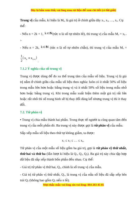 (t c n là s t nhiên l ), thì trung v c a m u Mứ ố ự ẻ ị ủ ẫ