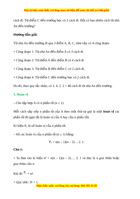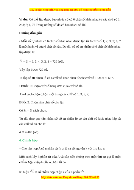 Đây là bản xem th , vu ử i lòng mua tài li u ệ đ xe ể m chi ti t ế (có l i ờ gi i ả ) Ví d : ụ Có thể l p ậ đư c ợ bao nhiêu số có 6 ch ữ s ố khác nhau t ừ các ch ữ s ố 1; 2; 3; 5; 6; 7? Trong nh ng s ữ