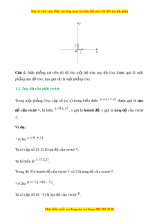 ẳ mà trên đó đã cho m t ộ hệ tr c ụ t a ọ độ Oxy đư c ợ g i ọ là m t ặ ph ng ẳ t a đ ọ O ộ xy, hay g i ọ t t ắ là m t ặ ph ng ẳ Oxy. 1.3. T a ọ đ c ộ a m ủ t ộ vectơ Trong m t ặ ph ng ẳ Oxy, c p ặ số (x; y) trong bi u ể di n ễ a x i yj đư c ợ g i ọ là t a ọ độ c a