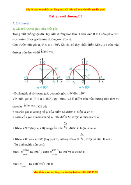 Đây là bản xem th , vu ử i lòng mua tài li u ệ đ xe ể m chi ti t ế (có l i ờ gi i ả ) Bài t p cu ậ i ố chư ng ơ III A. Lý thuy t ế 1. Giá tr l ị ư ng gi ợ ác c a m ủ t ộ góc Trong m t ặ ph ng ẳ t a ọ đ ộ Oxy, n a ử đư ng