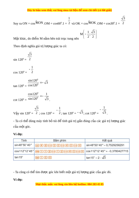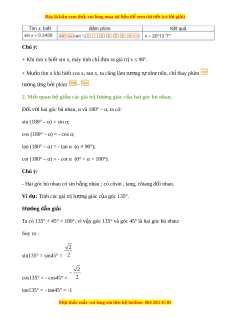 Đây là bản xem th , vu ử i lòng mua tài li u ệ đ xe ể m chi ti t ế (có l i ờ gi i ả ) Chú ý: + Khi tìm x bi t ế sin x, máy tính ch đ ỉ a ư ra giá tr x ≤ ị 90°. + Muốn tìm x khi bi t