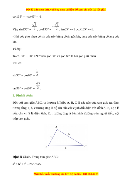 ; có côsin , tang, côtang đ i ố nhau. Ví d :