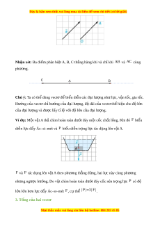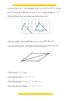 ể cuối trùng nhau (ch ng h ẳ n ạ AA , BB ), g i ọ là các vect –không. ơ + Ta quy ư c vect ớ –không ơ có đ dài ộ b ng ằ 0, cùng hư ng ( ớ do đó cùng phư ng) ơ v i ớ m i ọ vect . ơ + Các vect –không có ơ cùng đ dài ộ và cùng hư ng ớ nên b ng ằ nhau và đư c kí ợ hi u ệ chung là 0 . + V i ớ m i ỗ đi m ể O và vect ơ a cho trư c, ớ có duy nh t ấ đi m ể A sao cho OA a . M i ọ thắc m c