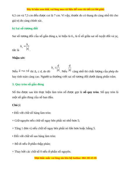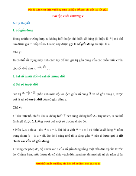 Đây là bản xem th , vu ử i lòng mua tài li u ệ đ xe ể m chi ti t (c ế ó l i ờ gi i ả ) Bài t p cu ậ i ố chư ng ơ V A. Lý thuy t ế 1. Số gần đúng Trong nhi u ề trư ng ờ h p, ợ ta không bi t ế ho c ặ khó bi t ế số đúng (kí hi u ệ là a ) mà chỉ tìm đư c ợ giá tr x ị p x ấ nó. G ỉ iá tr này đ ị ư c ợ g i