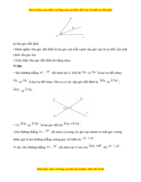 Đây là bản xem th , vu ử i lòng mua tài li u ệ đ xe ể m chi ti t (c ế ó l i ờ gi i ả ) b) Hai góc đối đ nh ỉ • Đ nh ị nghĩa: Hai góc đ i ố đ nh ỉ là hai góc mà m i ỗ c nh ạ c a ủ góc này là tia đ i ố c a ủ m t ộ c nh ạ c a góc ủ kia.