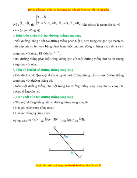 m t c p góc so le trong b ng nhau ho c m t c p góc đ ng v b ng nhau thì a và bộ ặ ằ ặ ộ ặ ồ ị ằ