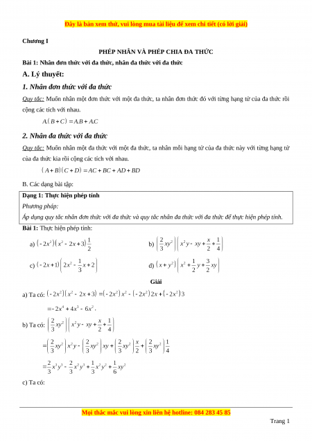 Bài 1: Nhân đơn thức với đa thức, nhân đa thức với đa thức A. Lý thuyết: