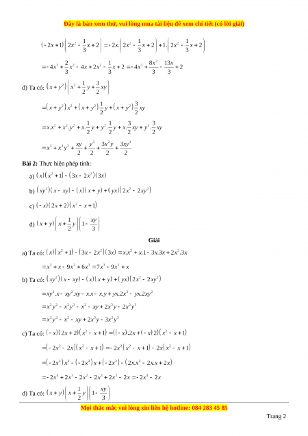 của đa thức kia rồi cộng các tích với nhau. B. Các dạng bài tập: