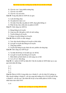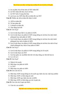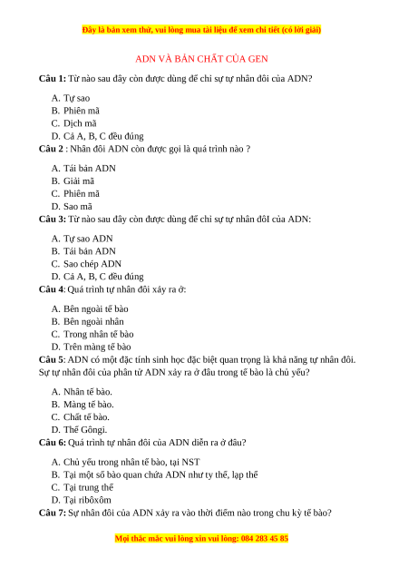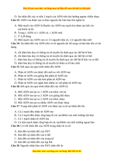 Câu 1: Từ nào sau đây còn được dùng để chỉ sự tự nhân đôi của ADN? A. Tự sao B. Phiên mã C. Dịch mã D. Cả A, B, C đều đúng