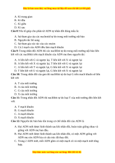 Câu 9: Trong nhân đôi ADN thì các nuclêôtit tự do trong môi trường nội bào liên