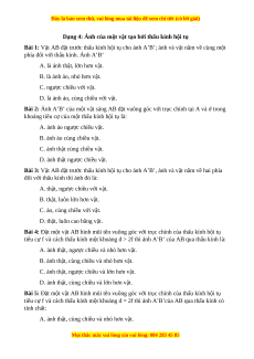 Bài 7: Khi vt đặt rất xa thấu kính thì ảnh tht có vị trí cách thấu kính một khoảng