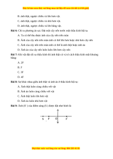 Bài 7: Khi vật đặt rất xa thấu kính thì ảnh thật có vị trí cách thấu kính một khoảng bằng: A. 2F B. F C. 3F D. 4F