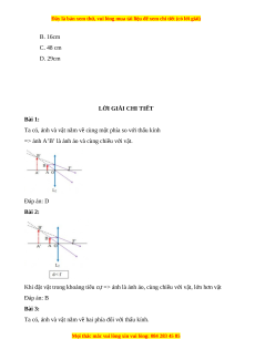 cự (f = 16cm ). Có thể thu được ảnh nhỏ hơn vật tạo bởi thấu kính này khi đặt vật cách thấu kính: A. 8 cm B. 16 cm C. 32 cm D. 48 cm