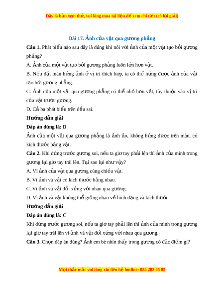 Đây là bản xem th , vu ử i lòng mua tài li u ệ đ xe ể m chi ti t (c ế ó l i ờ gi i ả ) Bài 17. Ảnh c a v ủ t ậ qua gư ng ph ơ ng ẳ Câu 1. Phát bi u